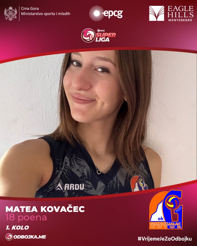 Odličnu partiju Matee Kovačec, Gimnazijalac je krunisao pobjedom u gostima protiv Budve 3:0 (28:26, 25:20, 25:21). Kapitenka kotorskog tima upisala je 18 poena u sjajnom nastupu u Mediteranskom sportskom centru.