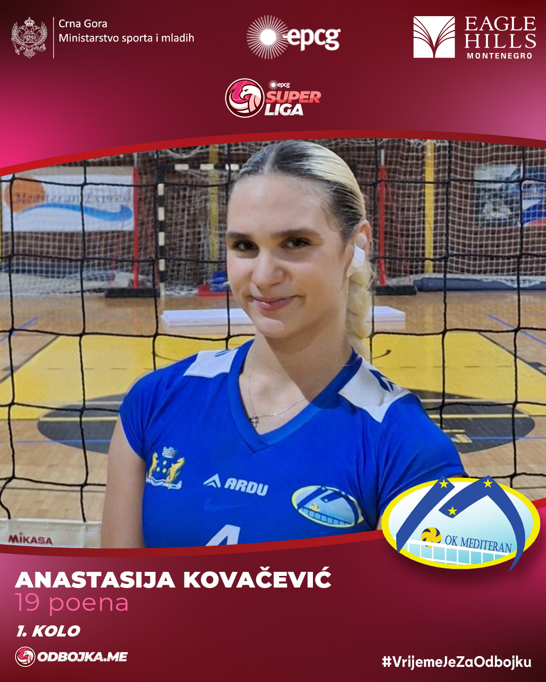Uprkos sjajnom izdanju Anastasije Kovačević, Mediteran nije uspio da pobjedom otvori takmičenje u EPCG Superligi. Kapitenka budvanskog tima bila je najefikasnija igračica meča sa Albatrosom, u kom je novski sastav slavio 3:0 (25:16, 25:18, 25:17) – Kovačević je osvojila 19 poena i ujedno bila najuspješnija poenterka prvog kola šampionata.