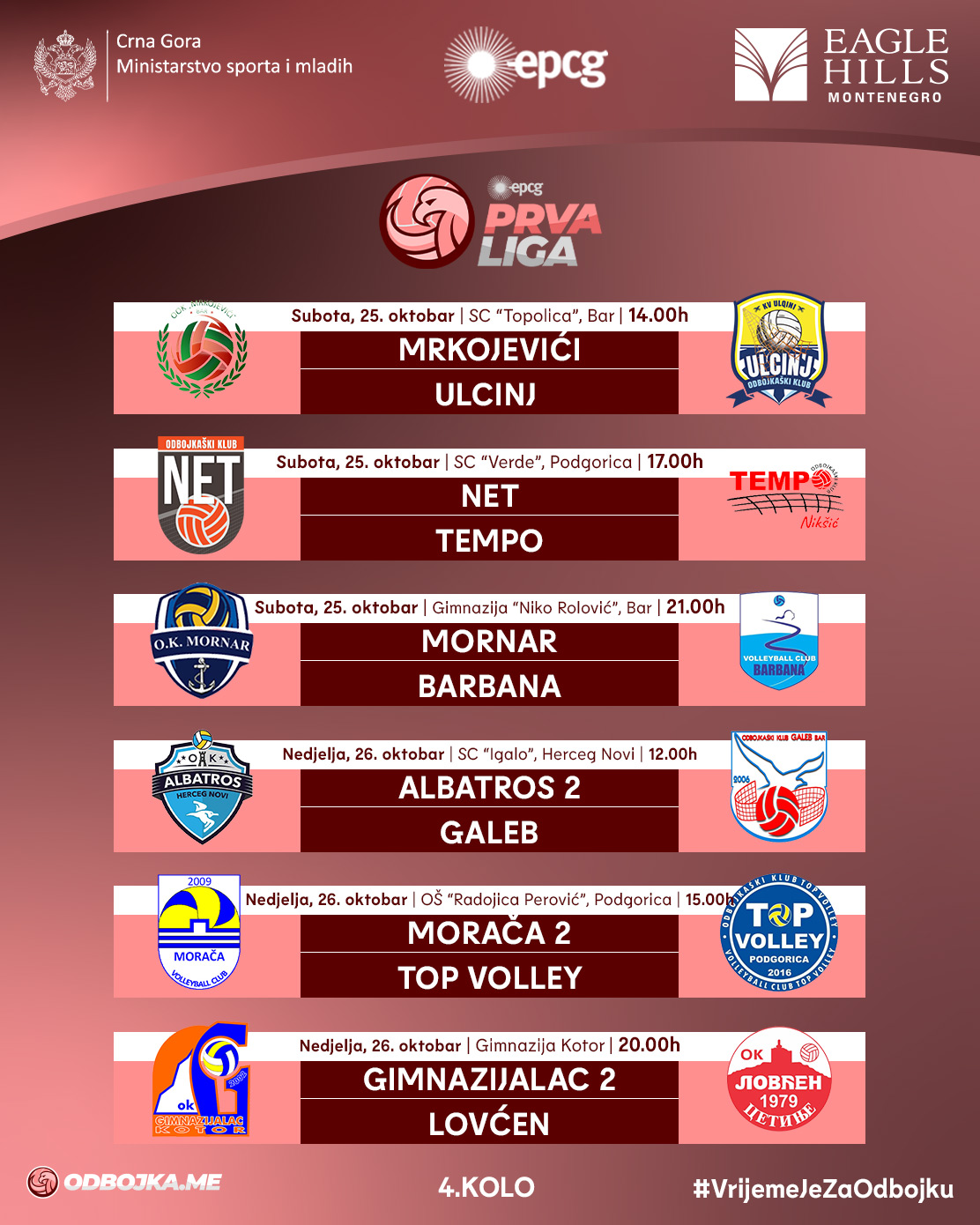 Volley Star pauzira u ovoj rundi, a nju će u „centralnoj“ regiji zaključiti još jedan duel u glavnom gradu. Morača 2 će u nedjelju, 26. oktobra, s početkom u 15 sati, dočekati ekipu Top Volley-a u sportskoj dvorani OŠ „Radojica Perović“. Morača 2 je nakon uvodnih pobjeda pretrpjela poraz od Neta, a nikšićki sastav je jedini bez trijumfa u grupi.