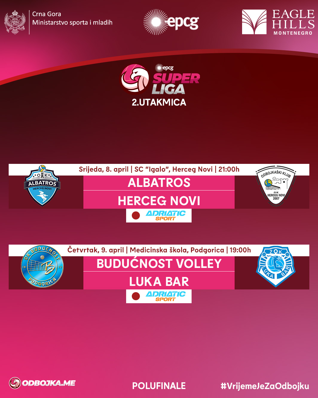 Revanš utakmicama nastavlja se borba za veliko finale EPCG Superlige odbojkašica u naredna dva dana. Herceg Novi i Podgorica biće odbojkaški centri Crne Gore.