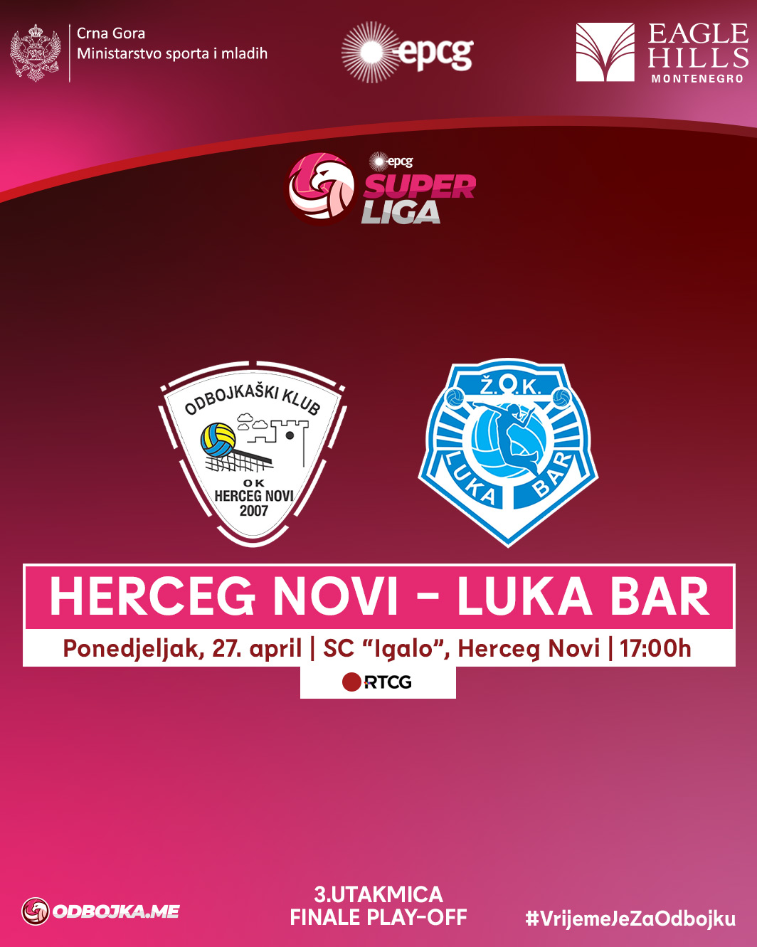 Duel u SC “Igalo” biće sedmi ovosezonski između Herceg Novog i Luke Bar. Eventualni četvrti duel finalne serije u Baru planiran je za 29. ili 30. april.