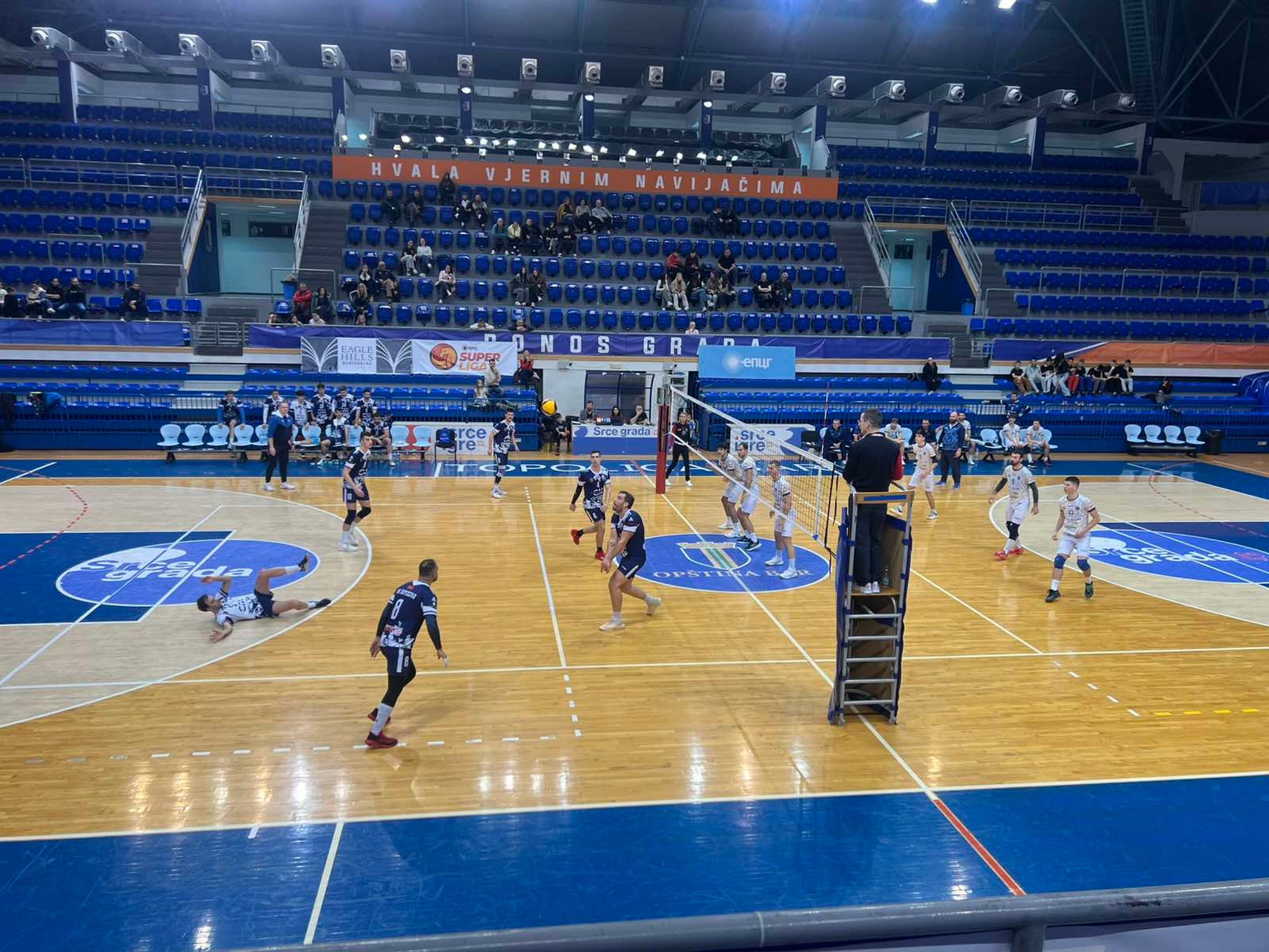 Uzbudljiv meč odigran je u SC „Topolica“ u kojoj je Sutjeska došla do trećeg trijumfa u sezoni – Nikšićani su slavili 3:1 (25:17, 21:25, 25:21, 25:18). Vasilije Milenković već se ispostavlja kao pojačanje – bivši odbojkaš Budve bio je najefikasniji kod Sutjeske sa 19 poena, koliko je u redovima Mornara osvojio Lazar Cimbaljević. Dvocifreni su bili još Vladan Stojanović sa 12, Dragan Stojanović sa 11 i Marko Rondović sa 10, a kod Mornara 16 poena Stefana Radevića.