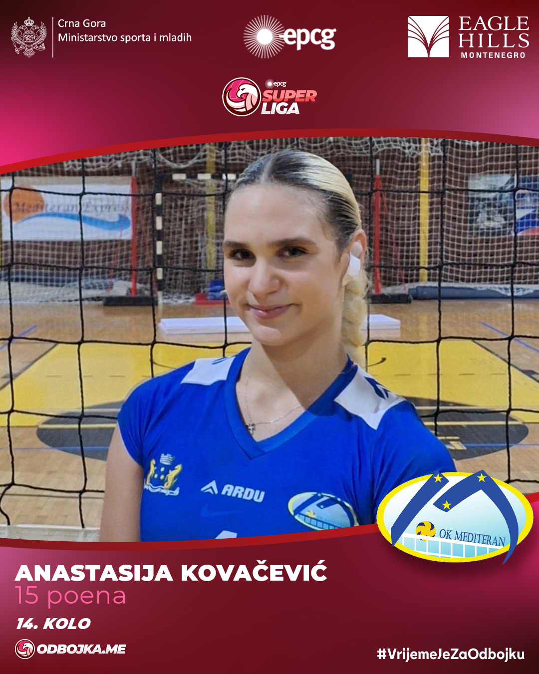 Odbojkašica Gimnazijalca Jelena Ćorović bila je najefikasnija u 14. kolu EPCG Superlige, pošto je u najuzbudljivijem meču runde osvojila čak 31 poen i preuzela ulogu glavne ofanzivne opcije kotorskog tima od Matee Kovačec. Gimnazijalac je slavio u Pljevljima 3:2 na gostovanju Rudaru, a Ćorovićeva je imala utakmicu za pamćenje.