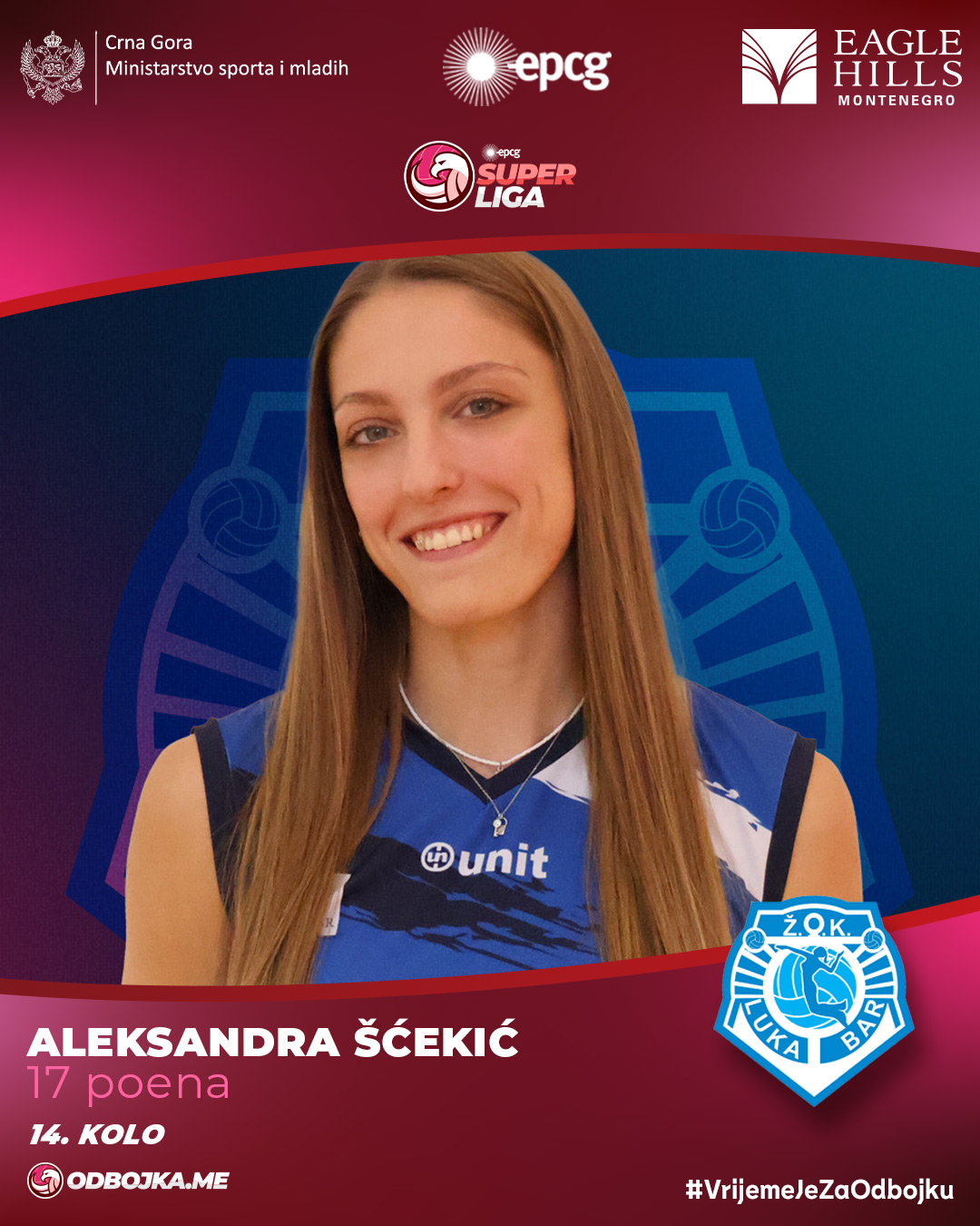 Aleksandra Šćekić bila je najbolja poenterka na utakmici Luke Bar i Morače, koju su „sirene“ dobile 3:0, a Šćekićeva je osvojila 17 poena.