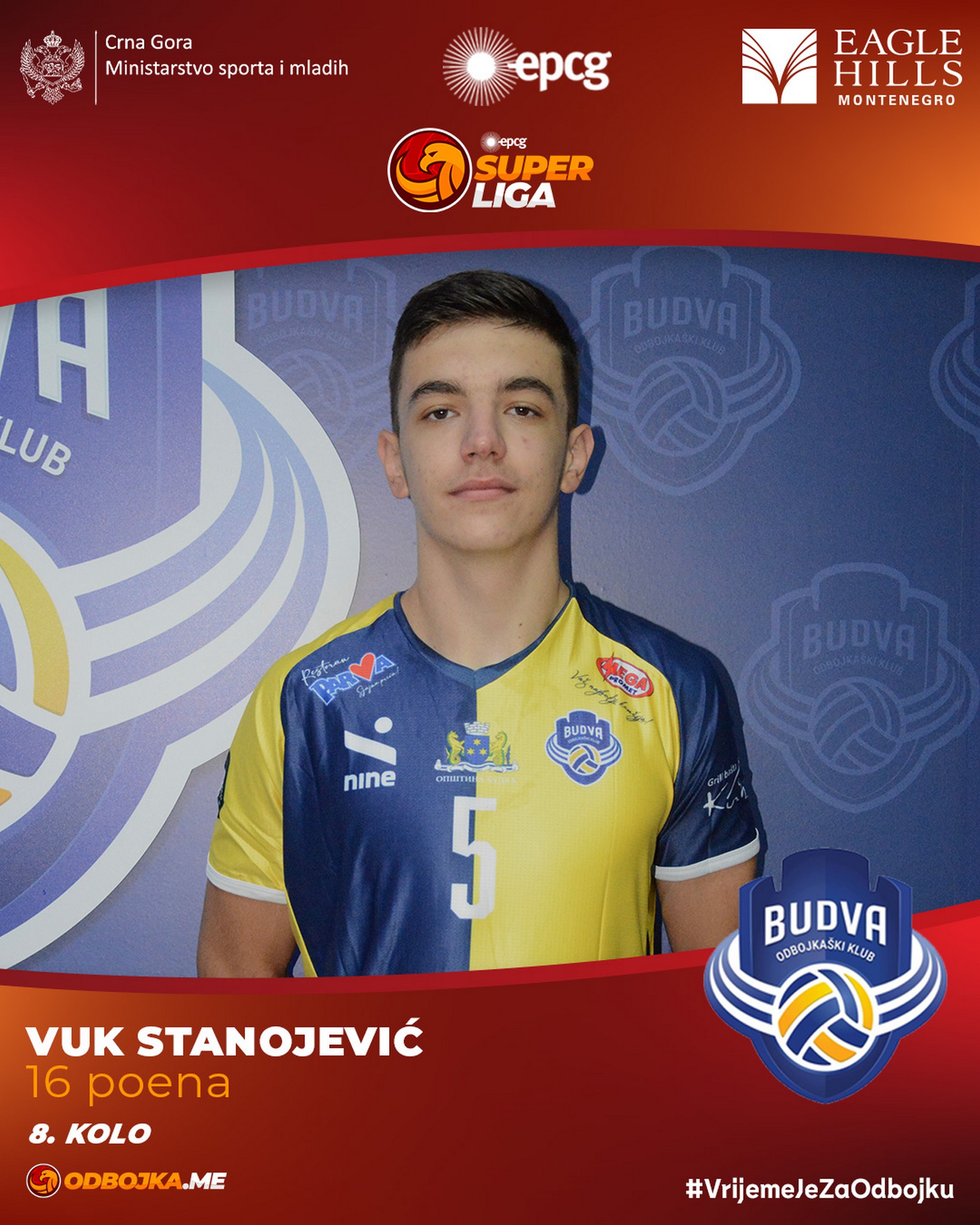 Odličnu partiju pružio je i Vuk Stanojević, koji je bio najefikasniji u trijumfu Budve nad Jedinstvom rezultatom 3:0. Stanojević je meč završio sa 16 poena.