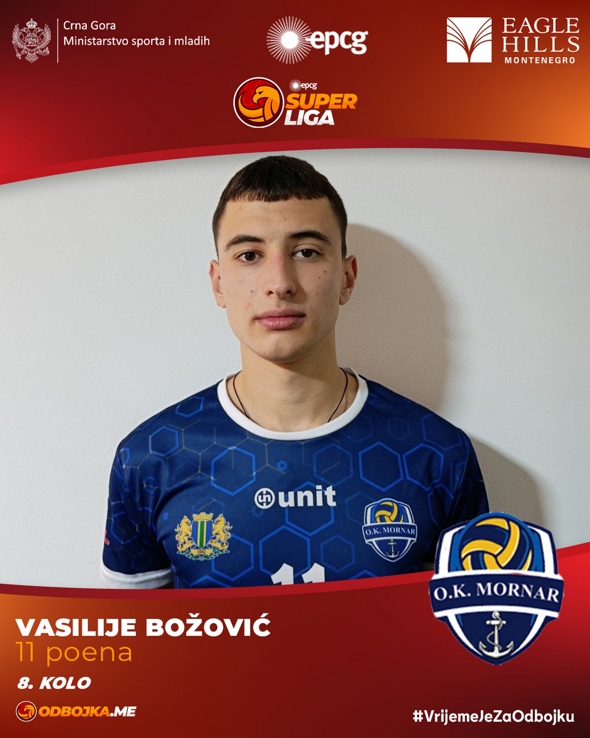 U ovom kolu istakao se i Vasilije Božović, koji je sa 11 poena bio najbolji poenter duela Ulcinj – Mornar (0:3).