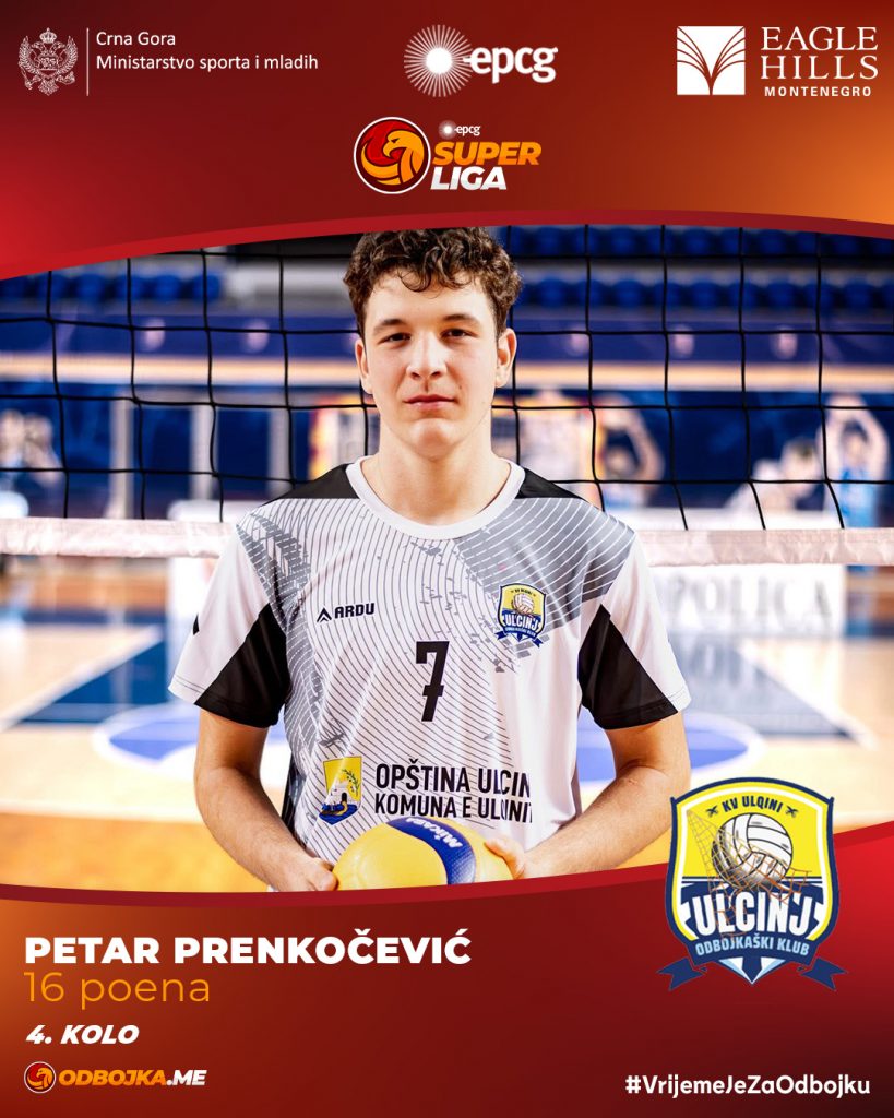 Ovog vikenda prvu pobjedu u crnogorskom šampionatu ostvarili su odbojkaši Ulcinja, koji su na Cetinju bili bolji od Lovćena 3:1 (26:24, 25:18, 25:22, 25:21), a u istorijskom meču za ulcinjsku mušku odbojku istakao se Petar Prenkočević sa 16 poena.