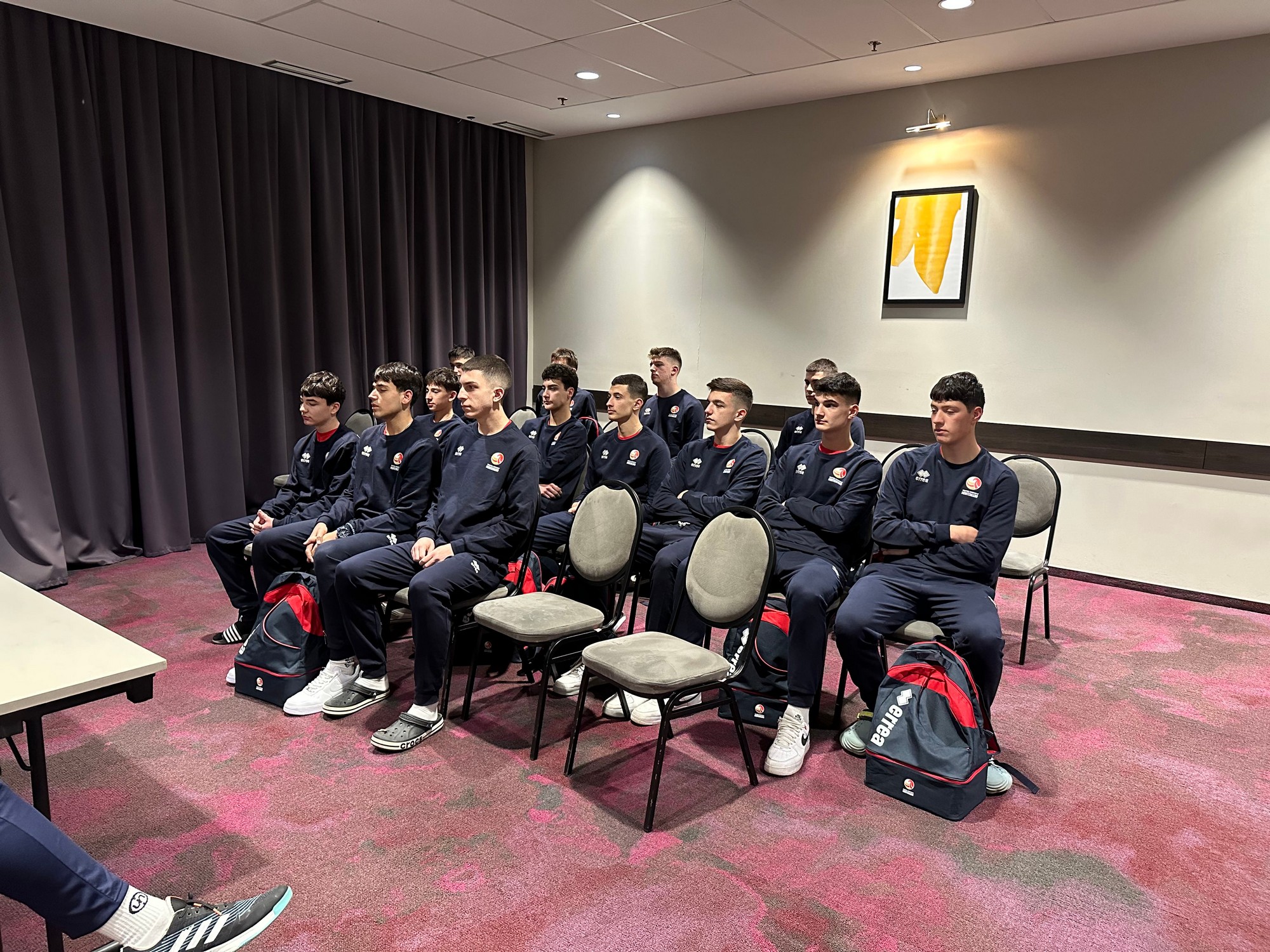 Selekciju su po dolasku u hotel „VOCO“ pozdravili predsjednik Odbojkaškog saveza Crne Gore (OSCG) Nikola Kažić i direktor muških selekcija u OSCG Ivan Ječmenica, koji su talentovanom timu i stručnom štabu poželjeli uspješan rad i sreću na turniru.