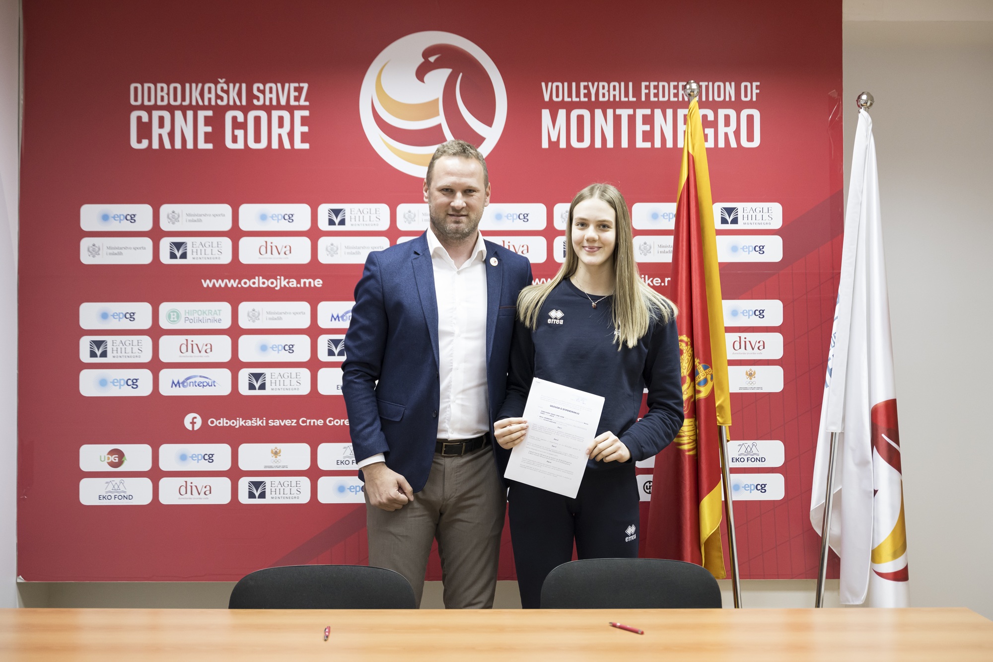 Nikola Kažić i Elena Jovanović prilikom potpisivanja stipendijskog ugovora, foto: OSCG