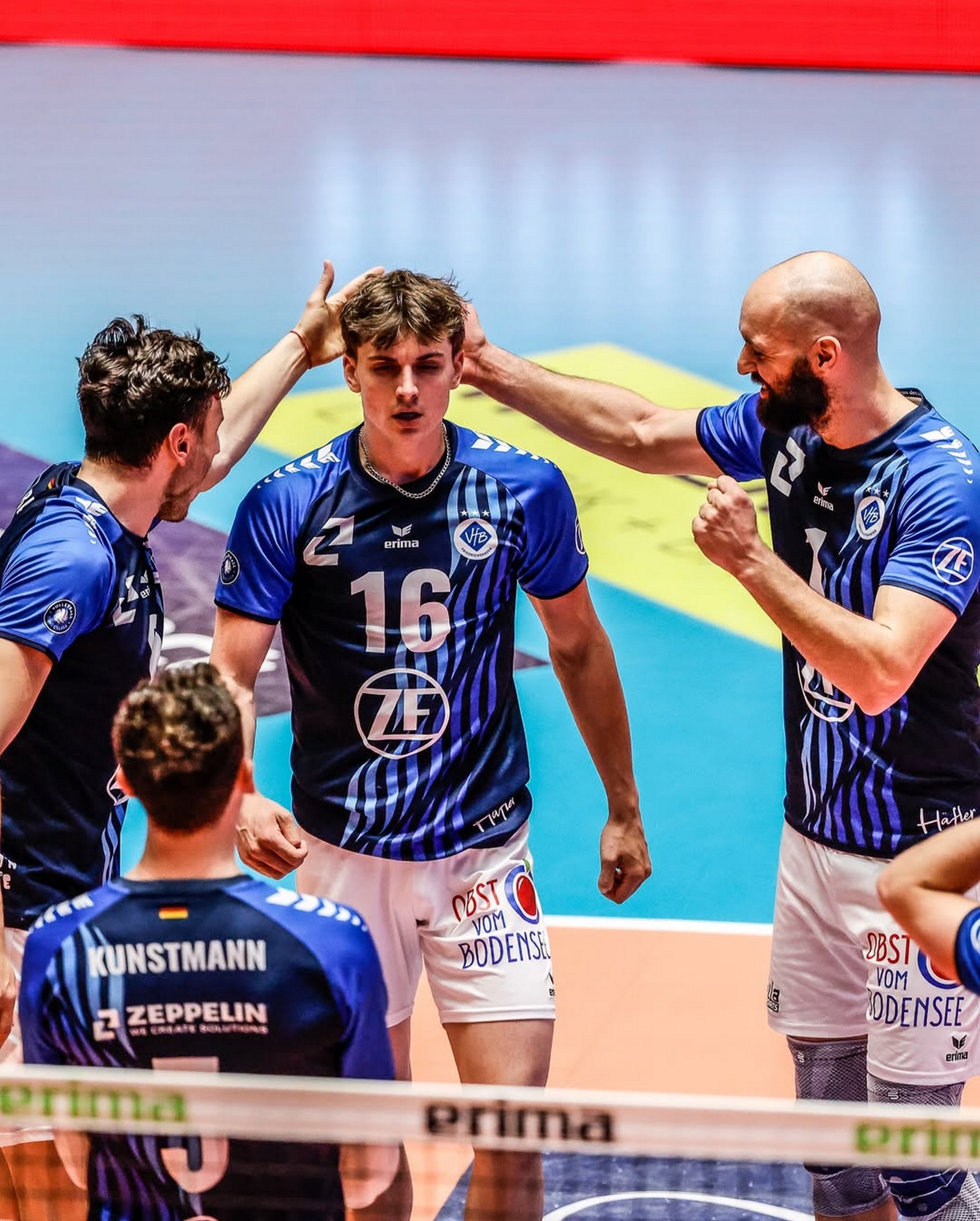 Za finale se bori i Vojin Ćaćić sa svojim Fridrihshafenom, koji je izjednačio na 1:1 u seriji sa Berlin Rejsingom. Trijumf Fridrihshafena kod kuće nakon uzbudljivog meča u pet setova, u kom je Ćaćić osvojio 12 poena. Prvi finalista Bundeslige je učesnik finala CEV Kupa Lineburg, a da li će za rivala imati Berlin ili Fridrihshafen znaće se u nedjelju nakon majstorice u glavnom gradu.