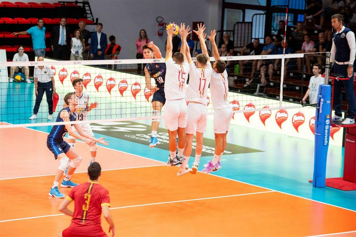 Jedina ekipa bez poraza na U17 Evropskom prvenstvu u Podgorici, uz Bugarsku, je selekcija Italije, koja je u derbiju vodećih reprezentacija grupe „II“ bila bolja od Španije 3:2 (23:25, 25:21, 25:21, 17:25, 15:13). Poraz Španije otvorio je priliku za Poljsku i Francusku.