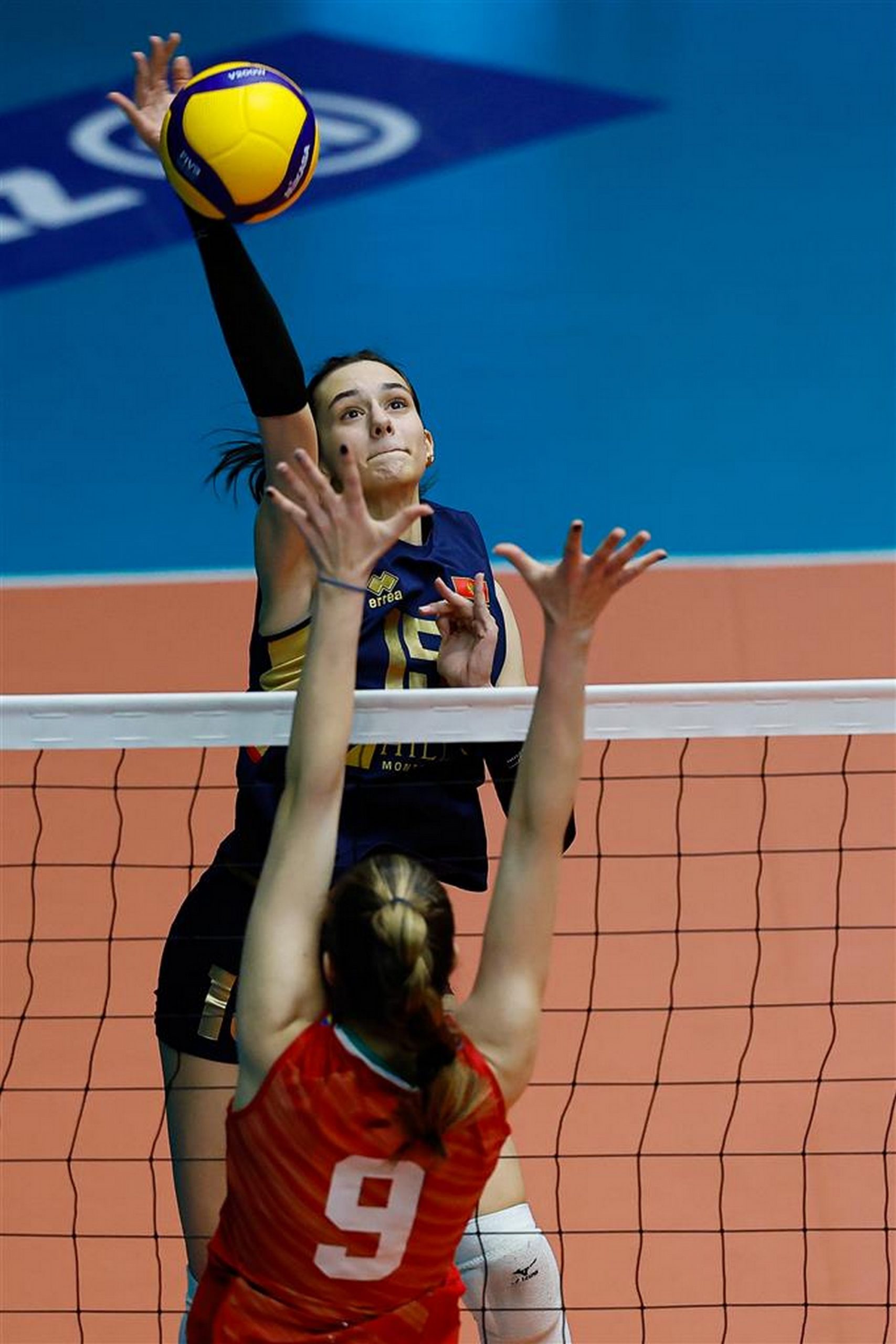 Poeni Anastasije Koprivice i Elene Čolaković bili su ključni da naša selekcija od 11:10 ode na 14:10, potom i na 15:11, 16:12 i napravi razliku. Domaćin se jeste vraćao (17:17) ali niti jednom više nije poveo u prvom setu. Poeni Koprovice, pa dva servisa Elene Čolaković i naše su se našle u zagrljaju – sa 22:21 otišle su na 25:21 i proslavile vođstvo 1:0.