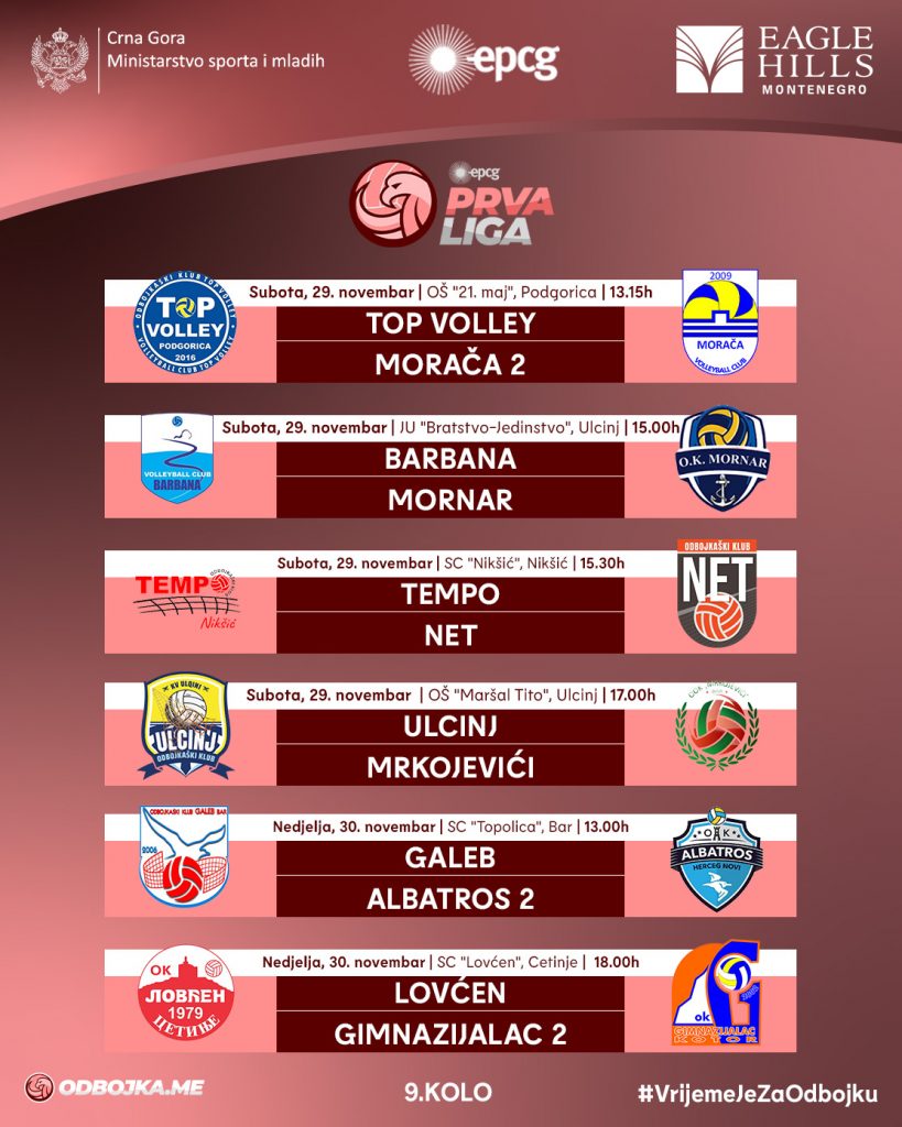 Utakmice pretposljednjeg, 9. kola, EPCG Prve lige u grupama B, C i D, kao i 5. kola u grupi A, biće odigrane tokom naredna tri dana. Dva kola prije kraja, plasman u plej-of već su obezbijedili Galeb, Akademija, Net, Mornar i Gorštak, kao vodeći timovi svojih grupa, a u plej-of će se plasirati i drugoplasirani timovi.