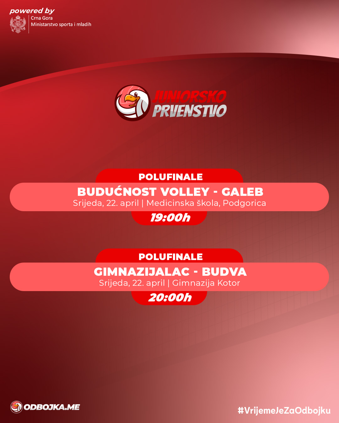 Odbojkašice Budućnosti ugostiće sastav Galeba u sportskoj dvorani Medicinske škole u Podgorici s početkom u 19 sati, a sat kasnije počeće duel Gimnazijalca i Budve u kotorskoj Gimnaziji.