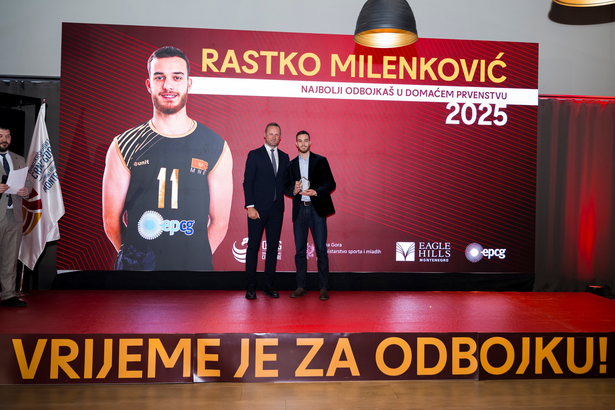 Rastko Milenković, najtrofejniji igrač u 2025. godini u nacionalnim klupskim okvirima, dobio je nagradu za najboljeg odbojkaša u domaćem prvenstvu. Tehničar Budućnosti bio je dio tima koji je ove jeseni osvojio Superkup, a prije toga sezonu završio sa duplom krunom u dresu Budve.