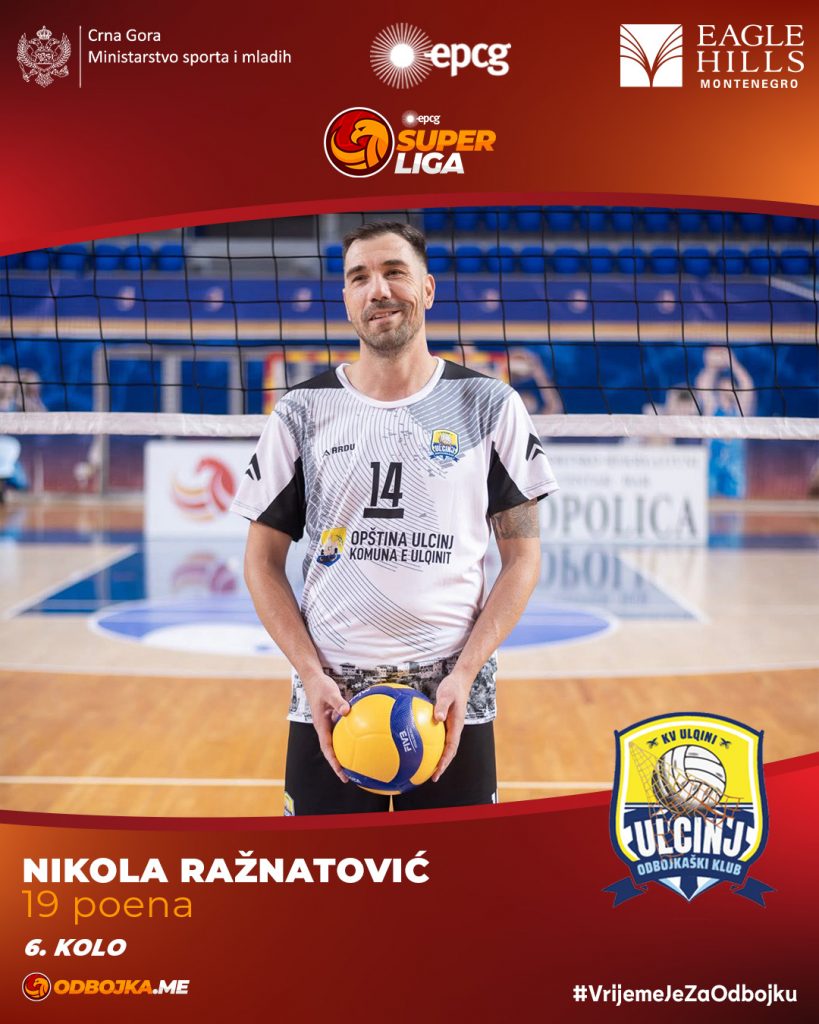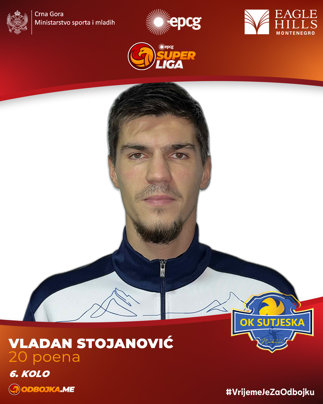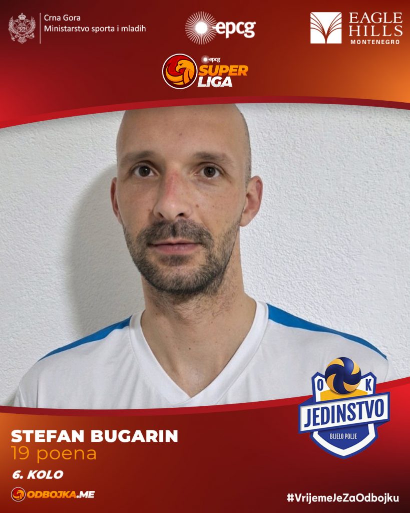 Šestu rundu EPCG Superlige odbojkaša obilježio je Vladan Stojanović, član Sutjeske, koji je u maksimalnoj pobjedi svog tima nad Lovćenom (3:0) briljirao sa 20 osvojenih poena, čime je ponio titulu najefikasnijeg igrača kola.